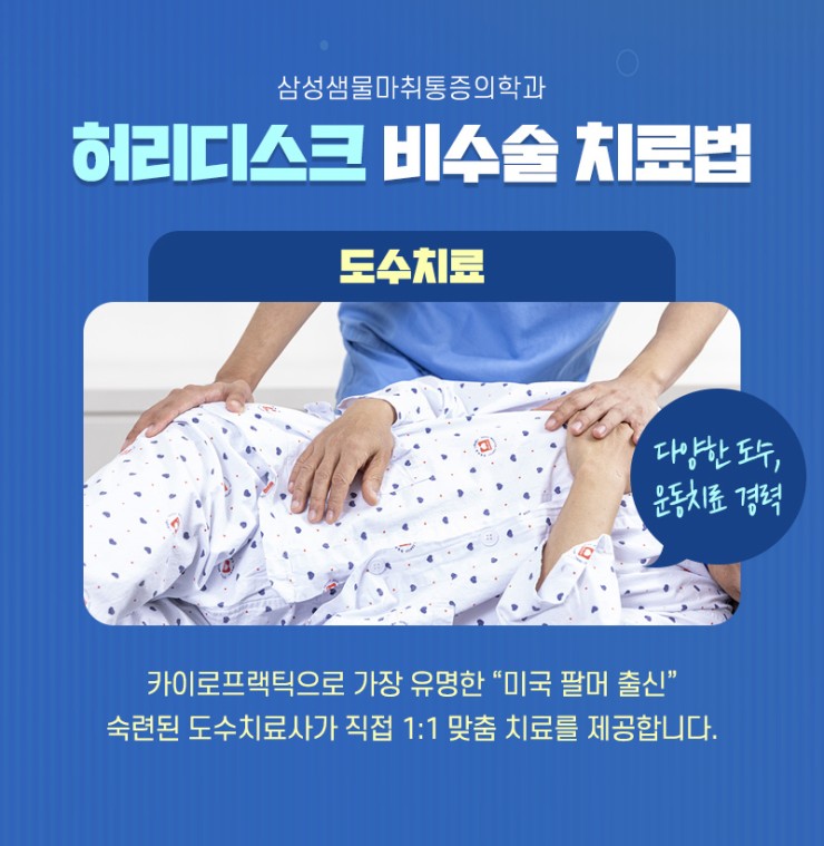 허리디스크와 다리저림 관리에는 도수치료도 큰 효과를 발휘합니다. 이는 약물이나 주사에 의존하지 않고, 의료진이 직접 손과 도구를 이용해 틀어진 척추·골반 정렬을 교정하고 긴장된 근육을 이완하는 방법입니다. 풍부한 임상 경험을 가진 숙련된 의료진이 1:1 맞춤 도수치료를 제공합니다. 특히 다양한 생활 패턴과 체형에 맞춘 설계로 재발 방지까지 고려하는 점에서 많은 환자들에게 만족도가 높습니다.