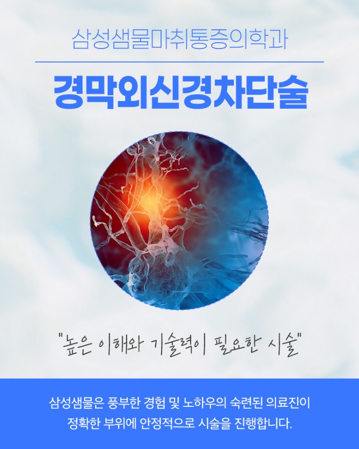 삼성샘물은 신경차단술 분야의 노하우를 바탕으로 보다 안전하고 정밀한 시술을 진행하고 있습니다.