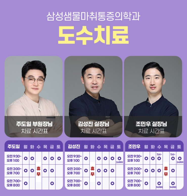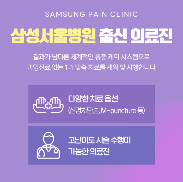 삼성서울병원 출신 의료진이 포진한 인덕원 삼성샘물마취통증의학과는, 오십견을 포함한 다양한 통증 질환에 대해 풍부한 임상 경험과 전문 지식을 바탕으로 환자 중심의 맞춤 치료를 제공합니다. 과잉 진료 없이 단계별로 필요한 치료만 제시하며, 약물주사도수치료재활관리로 이어지는 통합 시스템을 구축하고 있습니다.