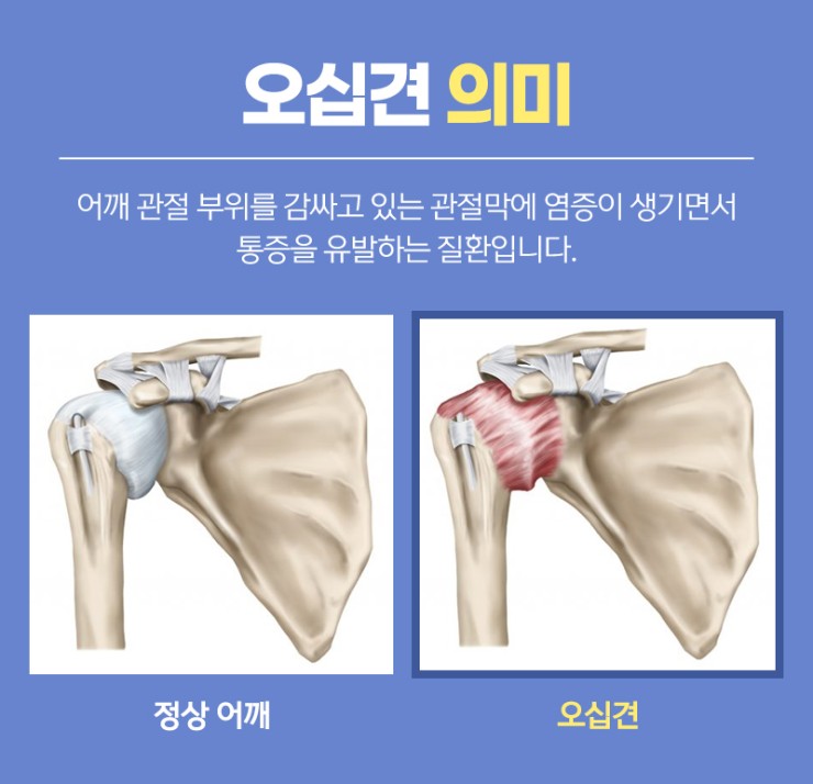 오십견은 단순한 일시적 근육통이 아니라, 어깨 관절을 감싸고 있는