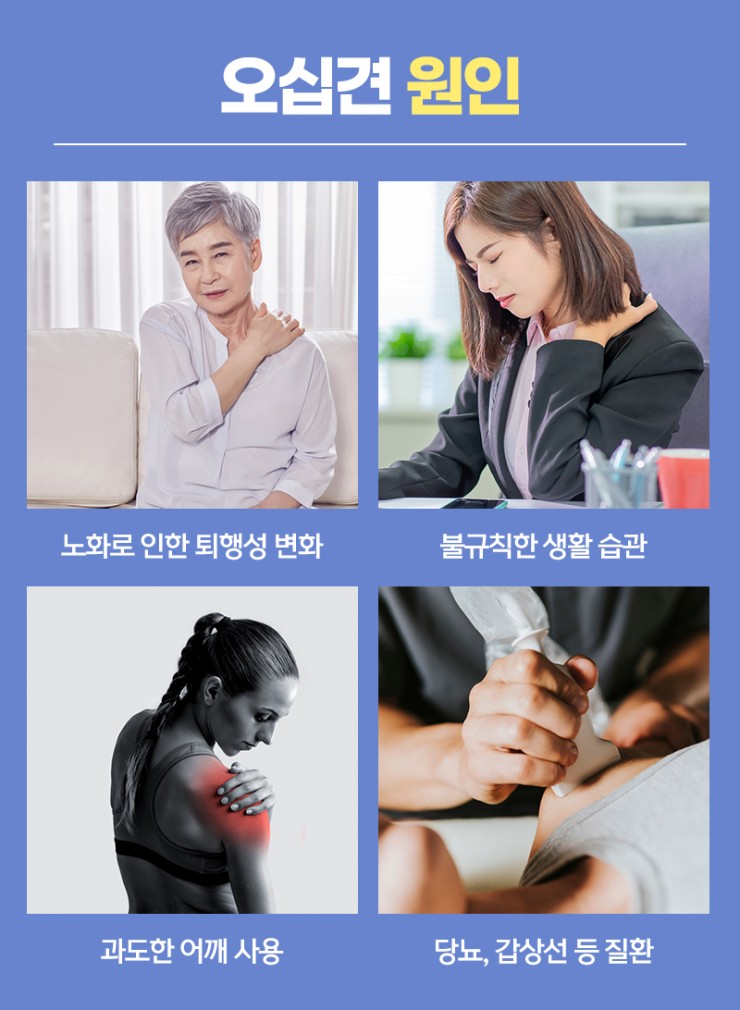 여기에 더해 많은 환자들이 경험하는 야간통은 수면을 방해하고 만성 피로로 이어져 삶의 질을 더욱 악화시킵니다. 통증은 어깨에만 국한되지 않고, 목, 등, 팔까지 방사될 수 있어 다양한 증상으로 오십견이 가려지는 경우도