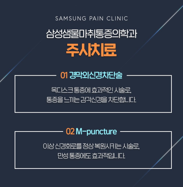 l 신경차단술: 염증이 심한 부위에 직접 약물을 주입하여 통증 신호를