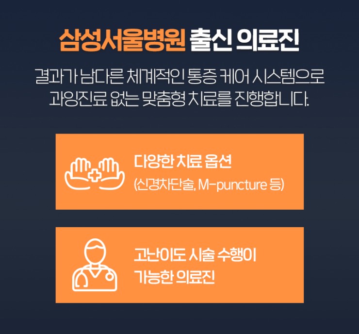 경추성 두통은 대부분 수술 없이도 정확한 진단과 단계별 치료만으로 증상 개선이 가능합니다. 범계의 통증 클리닉에서도 아래와 같은 비수술적 치료법이 많이 사용됩니다: