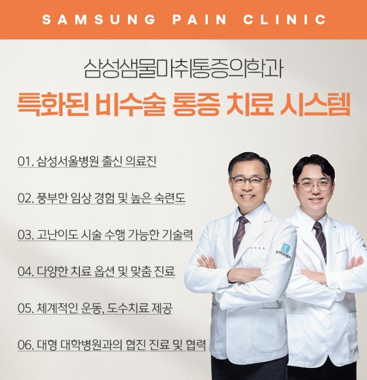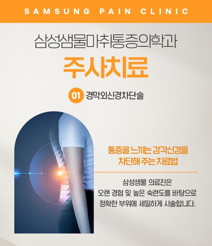삼성샘물마취통증의학과는 환자의 안전과 만족을 최우선으로 하여 불필요한 수술이나 과잉진료를 지양합니다. 수술이 꼭 필요한 경우에는 대학병원과의 협진 체계를 통해 안전하게 진행하고, 대부분의 환자에게는 비수술적 치료를 우선 적용하여 좋은 결과를 보여드리고 있습니다. 인덕원·호계 지역에서 오랜 기간 축적한 임상 경험과 노하우, 그리고 최신 장비와 숙련된 의료진을 기반으로 환자 개개인의 척추 건강을 책임지고 있습니다. 여름철 허리 통증과 다리 저림으로 불편을 겪고 있다면, 혼자 참고 지내지 마시고 전문적인 상담과 진료를 통해 삶의 질을 회복하시길 권장드립니다.