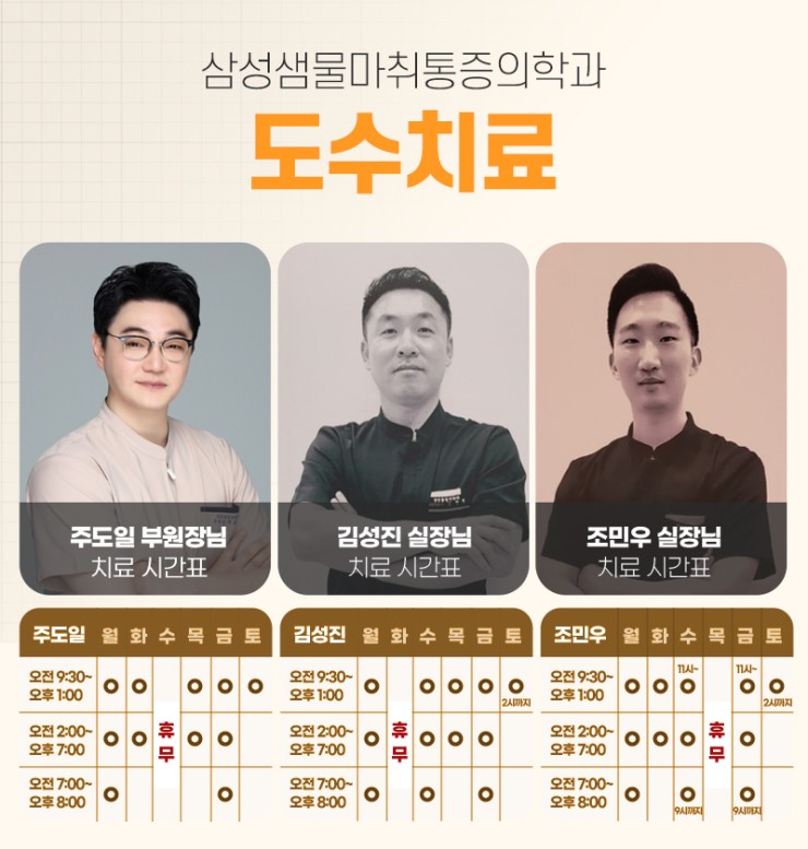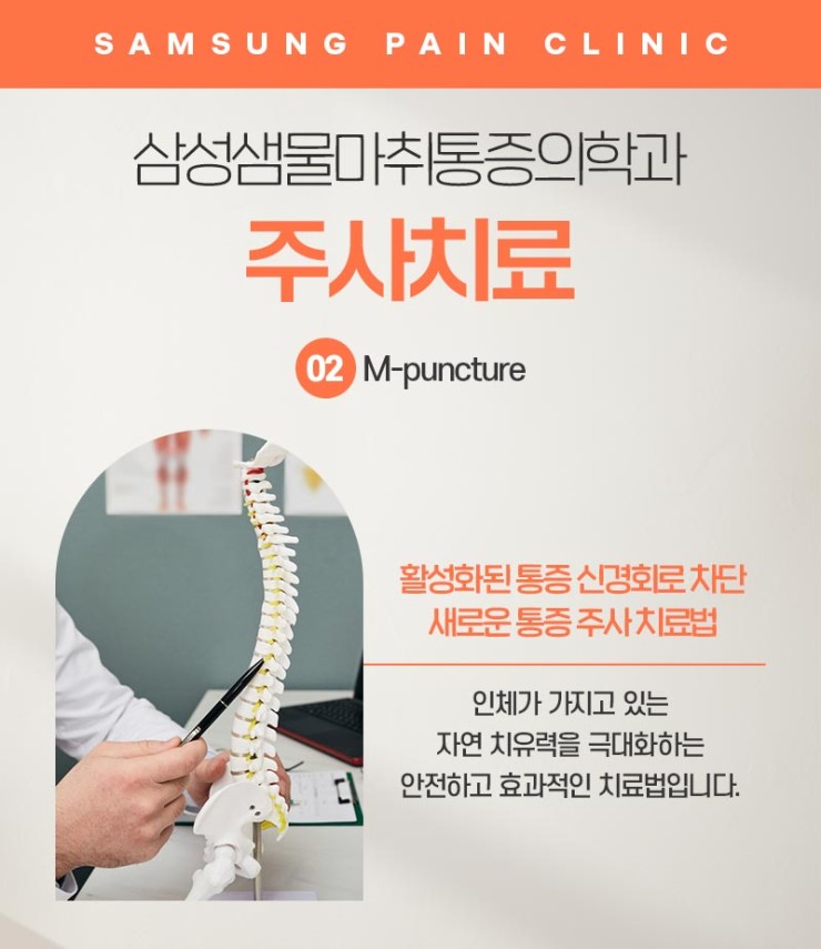 삼성샘물마취통증의학과에서는 모든 환자에게 동일한 치료를 권하지 않고, 정밀 진단을 통해 개인별 1:1 맞춤 치료를 진행합니다. 실제로 많은 환자들이 경막외 신경차단술이나 M-puncture를 통해 몇 차례 시술만으로도 통증이 크게 완화되어 만족스러운 결과를 경험하고 있습니다. 또, 꾸준한 도수치료와 생활습관 교정을 병행하면서 장기적으로 척추 건강을 회복한 사례도 많습니다. 여름철에는 활동량이 많아 증상이 악화되는 환자들이 자주 내원하는데, 조기에 치료를 시작하면 통증 악화를 예방하고 정상적인 생활로 빠르게 복귀할 수 있습니다.